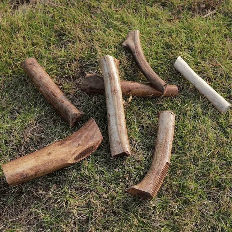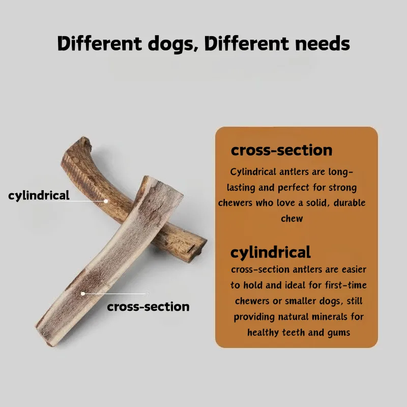 Cylindrical antlers: Perfect for strong chewers who love a solid, durable chew.